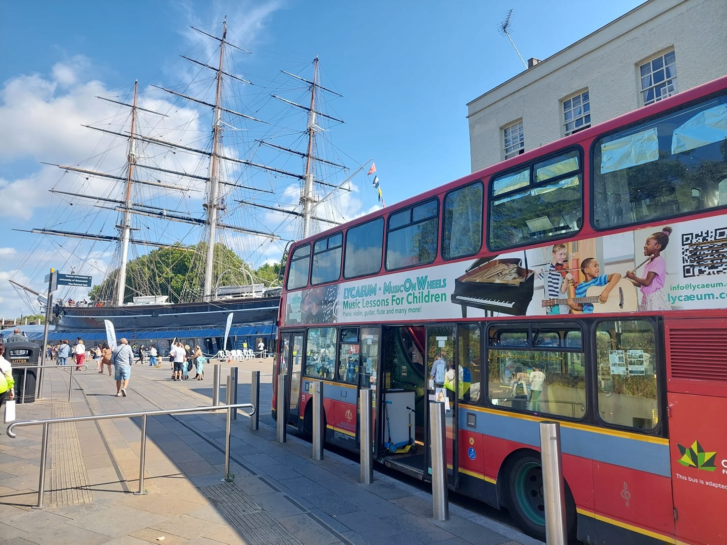 The documentary follows the journey of MuseCool’s MusicOnWheels project—a vibrant double-decker bus, meticulously refurbished and equipped to bring music lessons directly to those who need them most across London.